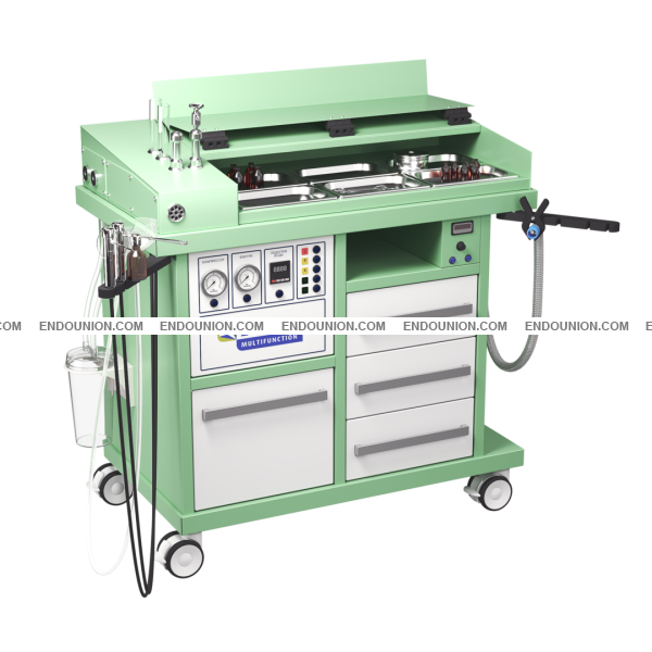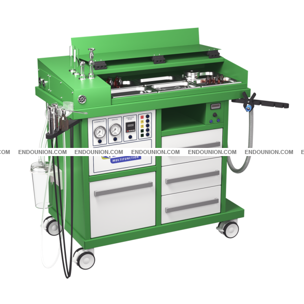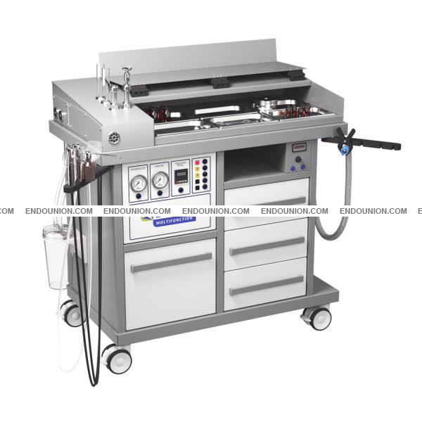 Металлический корпус Система промывания уха с автоматическим контролем t⁰ и системой фильтрации промывной воды Аспиратор жидкости Накопитель для секрета 2,5 л Система распыления медикаментов Система подогрева для 2 эндоскопов 2 емкости для антисептики эндоскопов Быстрый подогрев гортанных зеркал 2 галогеновых источника холодного света 150 Вт Ящик для сброса использованных инструментов, комплектуется емкостью из нержавеющей стали Ниша для радиохирургического или ЭХВЧ-аппарата Аспиратор дыма с 3-ступенчатой системой очистки